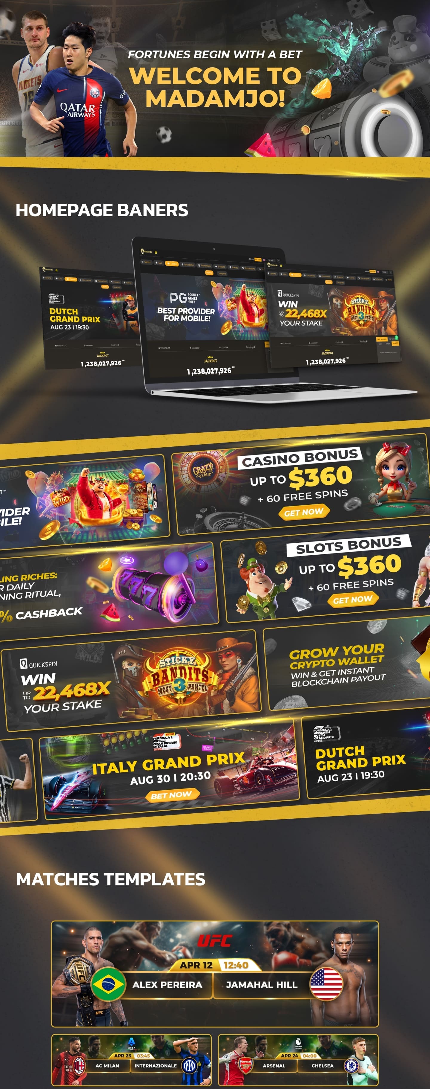 • Decent Design Service: We have crafted visually compelling designs, including website styling, homepage banners, promotional banners, game thumbnails, and UI elements that enhance the overall player experience.