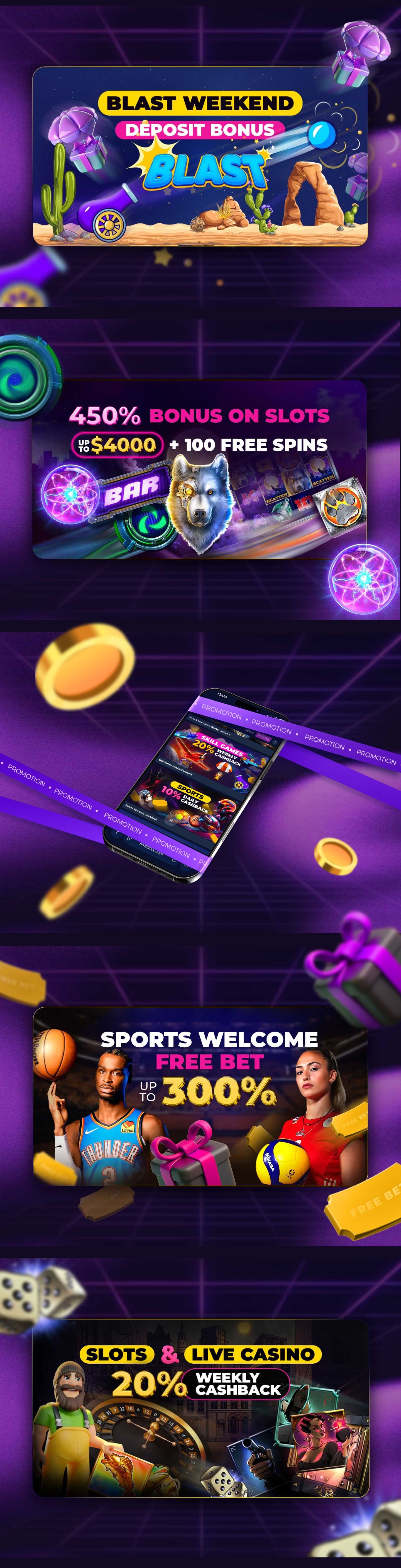 We developed a series of dynamic promo banners built around a fast-paced, action-driven design style that reflects the excitement of sports betting and online casino gameplay. Each asset was carefully crafted to highlight key promotions, bonuses, and campaigns, ensuring strong visual hierarchy, brand consistency, and instant player engagement.